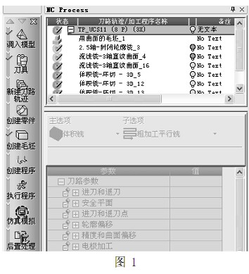 利用 cimatron 軟件可以解決復(fù)雜零件造型、編程等問題,實(shí)現(xiàn)自動編程,特別是對不規(guī)則復(fù)雜曲線、曲面和實(shí)體的編程,可以很大程度的提高編程時間和機(jī)床使用率。通過對該軟件中刀具庫的建立,工藝表的制定,可以大大縮短產(chǎn)品的生產(chǎn)周期和降低成本。特別值得一提的是該軟件具有智能化的向?qū)Чぞ邨l,該工具條給編程人員帶來了很大的便捷。