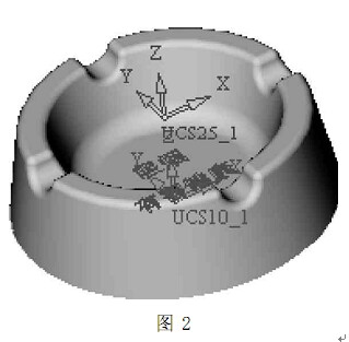 圖2為煙灰缸的模型,可以直接用CimatronE6軟件進(jìn)行實(shí)體造型,也可以通過標(biāo)準(zhǔn)數(shù)據(jù)轉(zhuǎn)換進(jìn)行建模。