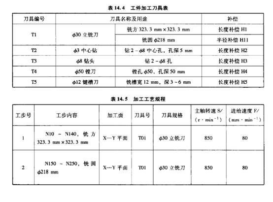 數(shù)控銑床(數(shù)控加工中心、精雕機(jī)、雕銑機(jī)、龍門銑、石墨機(jī)等)編程中介紹的準(zhǔn)備功能G代碼和輔助功能}1代碼在加工中心編程中依然有效,只是不同的系統(tǒng)功能略有差別。以數(shù)控加工中心為例,介紹數(shù)控加工中心程序編制的基本方法。該加工中心配備的是華中世紀(jì)星HNC-21 M數(shù)控系統(tǒng),該系統(tǒng)常用的一些G指令可參考第13章數(shù)控銑加工中的G指令,M代碼如表14. 2所示。