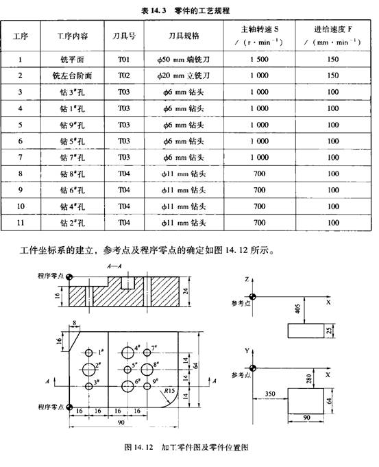 CNC加工中心的編程方法與一般數(shù)控銑床的編程方法相同,在第13章已經(jīng)介紹。下面以華中數(shù)控系統(tǒng)為例,重點(diǎn)介紹加工中心特有的一些程序編制方法。