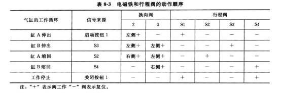 <3)系統電磁鐵和行程閥的動作順序見表8-3
