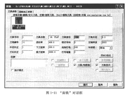 4)將鼠標(biāo)移動(dòng)到##1-16平刀,單擊鼠標(biāo)右鍵,彈出“定義刀具”對(duì)話框,如圖1-12所示。